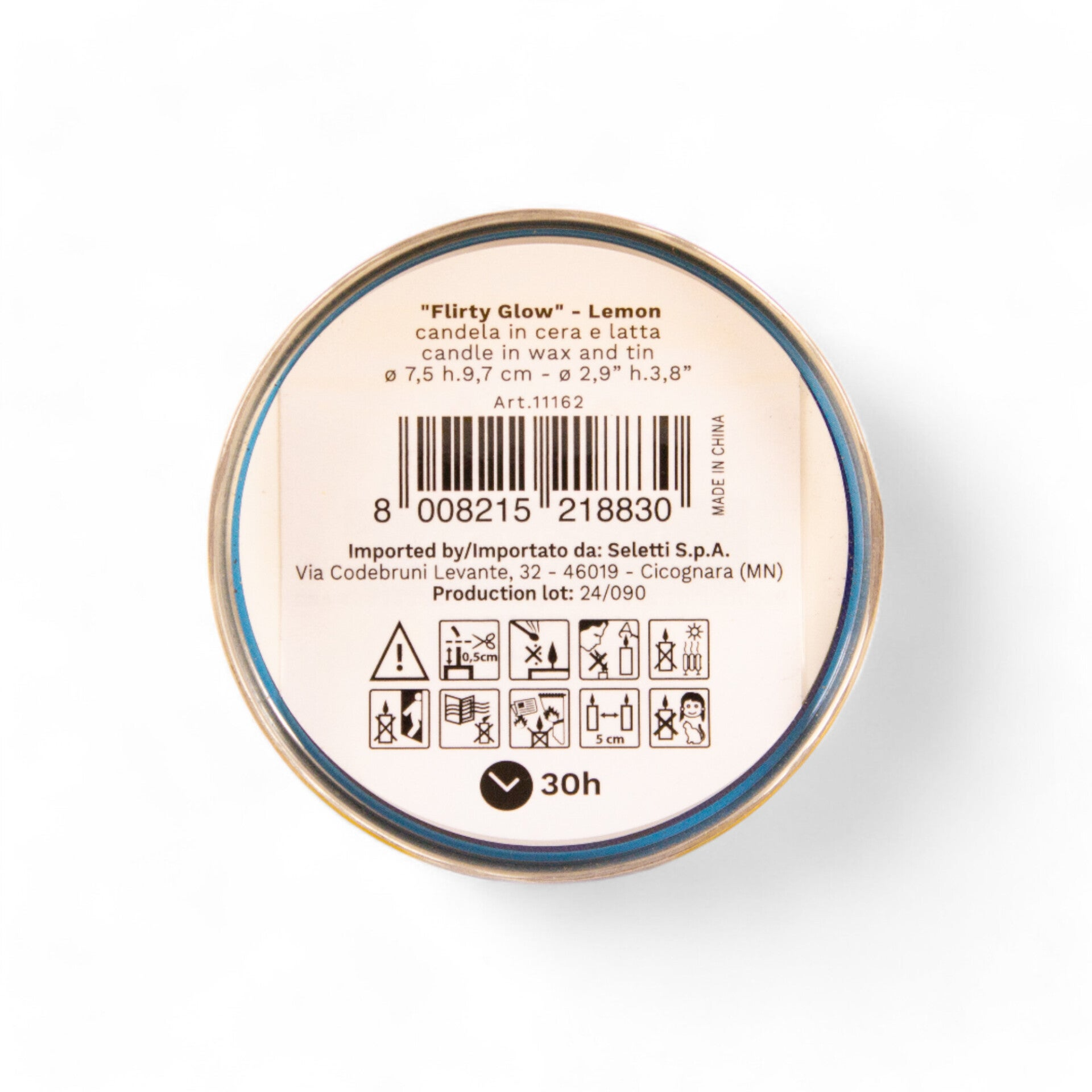 Candela in cera profumata in latta - Misura d.7,5cm h.9,7cm - durata 30 ore