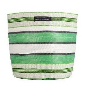 Copri vaso intrecciato e creato con tessuti ricavati dai sacchi di cemento usati, un contenitore dai diversi utilizzi. I sacchi di cemento vuoti provenienti dal settore edile vengono raccolti, lavati e triturati. Il materiale ricavato viene poi filato, tinto nuovamente e tessuto in questi meravigliosi !