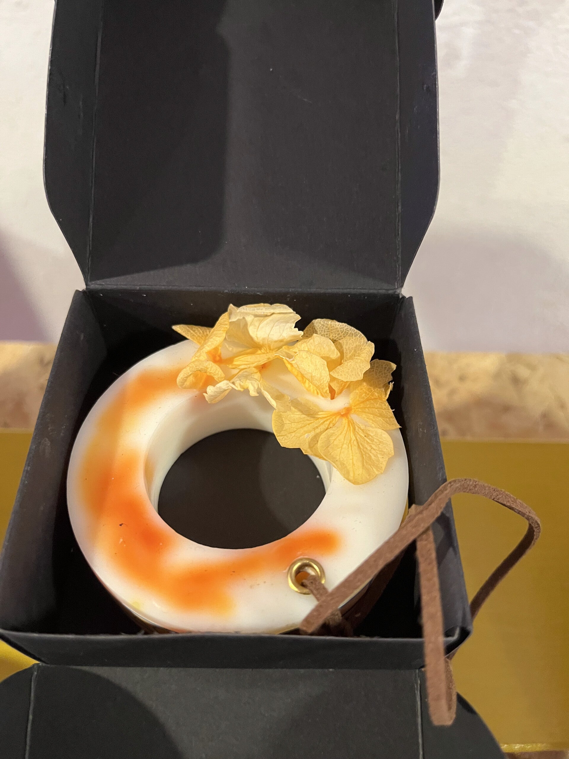 Realizzato con cera di soia e fragranze naturali, ogni anello è un piccolo capolavoro artigianale, decorato con fiori naturali stabilizzati che aggiungono un tocco di eleganza e bellezza.